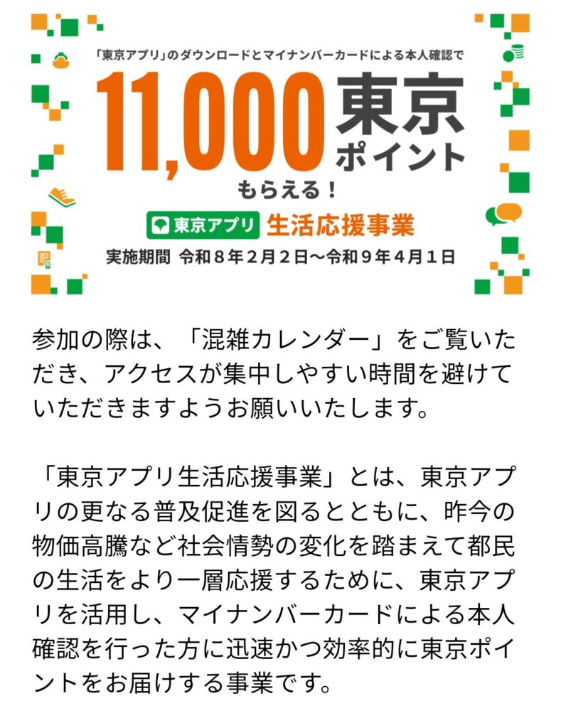 2/2(月)13:00から付与開始と銘打ってこちら東京では大々的に宣伝されておりました、生活応援事業、東京アプリポイント11000ポイント取得キャンペーン!