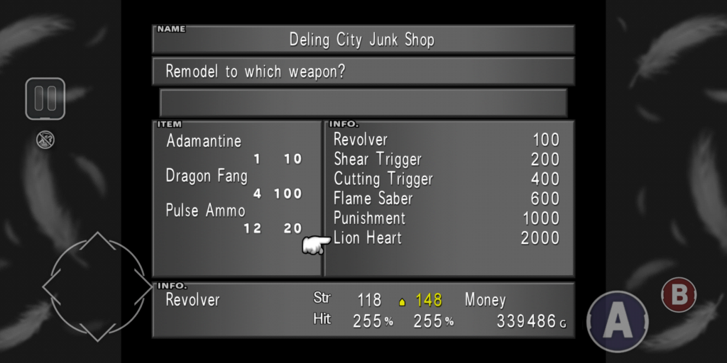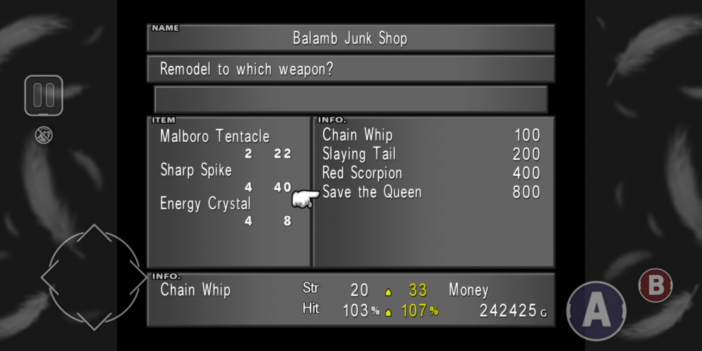 ティンバーへの初ミッションへ行く前に、ジャンク屋に寄ると、なんとなんとキスティス先生の武器が、セイブザクイーンに改造できるよ