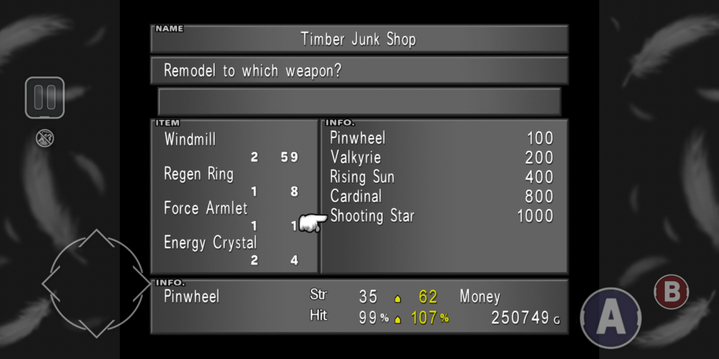 リノアはティンバーで合流してすぐシューティングスターに改造できるのよ