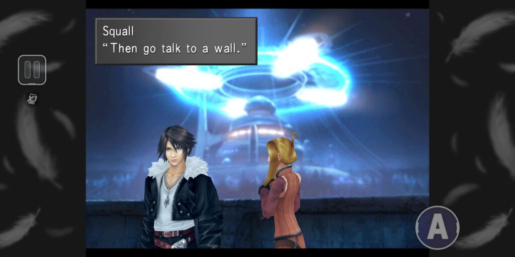 帰宅したら、合格発表、その後シード就任パーティーに参加、そしてキスティス先生と訓練場へ。有名なセリフ、「だったら壁にでも話してろよ」がここで聞けます。スコール最高だよね。