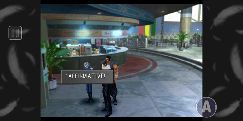 まず風神が出てくる場面は、バラムガーデン食堂。サイファーに何か飲むかと聞いています。