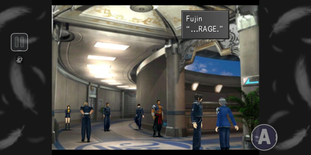 次に風神が登場するのは、ガルバディアガーデン。スコールが、「俺は嫌だからな!」と怒って外に出るのだが、その後ホールに行くと、2階から風神・雷神が駆け寄ってくる。その時の風神のセリフは以下。