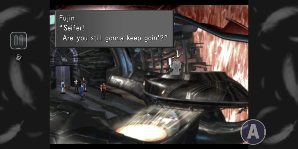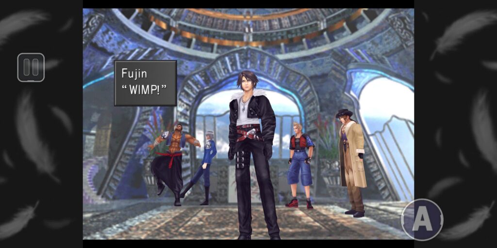 POSSE. We are. We always will be. Because we’re a posse, we want to help you. Whatever it takes to fulfill your dream, we’re willing to do. But…You’re being manipulated, Seifer.You’ve lost yourself and your dream. You’re just eating out of someone’s hand. We want the old you back. Since we can’t get through to you, all we have now to rely on is Squall! It’s sad… Sad that we only have Squall to rely on… Seifer, are you still gonna keep goin’?