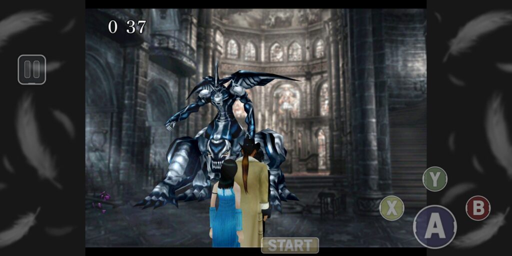 ジャンクションがセットされたら、中庭で待機。別パーティーで、右階段ホールAのオメガの鐘の紐を引っ張る。1分のカウントダウンが始まるので、スコールたちに切り替えて、礼拝堂へ。オメガ前の影と接触すれば戦闘となる。