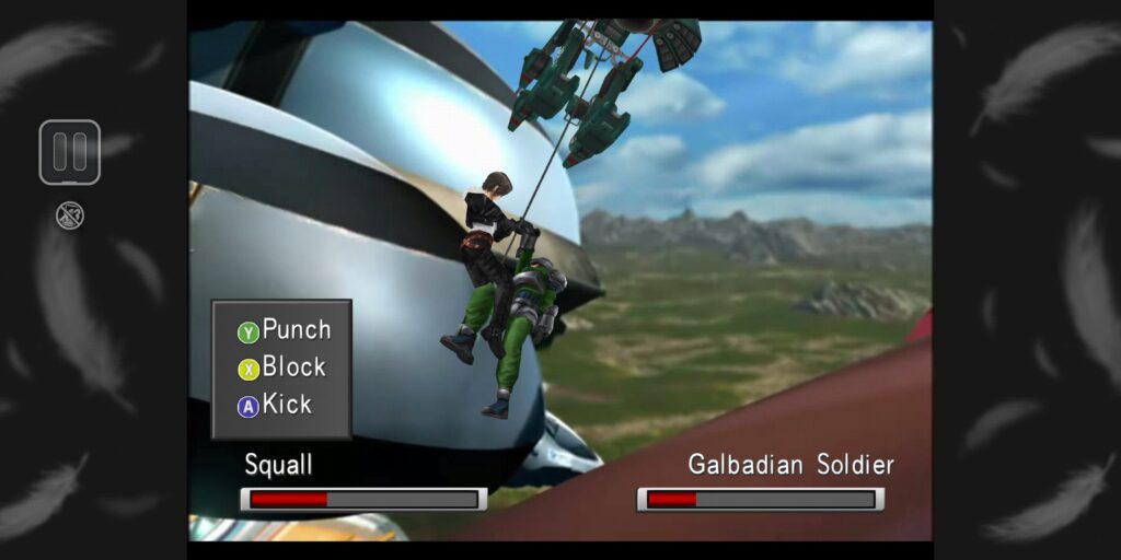 リノアを助けて地面に降りた時の足のタタタッ感がとても好き。軽やか。後ろでバイクに乗ってるガルバディア兵が剣で倒されて、戦闘の激しさを際立たせている。すごいわ。