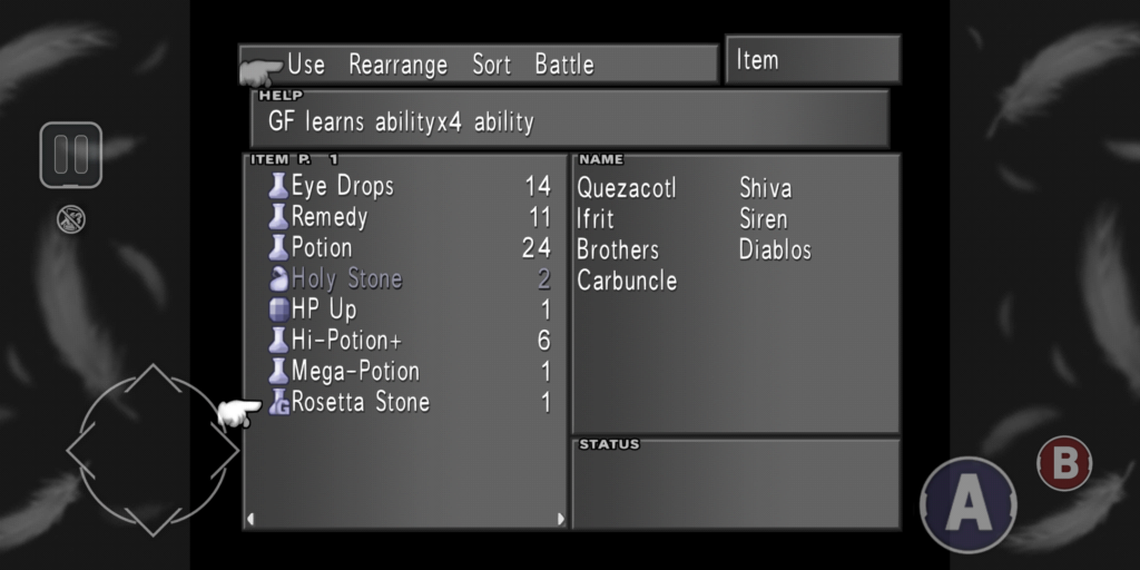 ロゼッタ石は、この段階で私はイフリートに覚えさせる。エスタショップ!!で手に入るロゼッタ石はサボさん。アップ系アイテムは全てスコールに全振り。