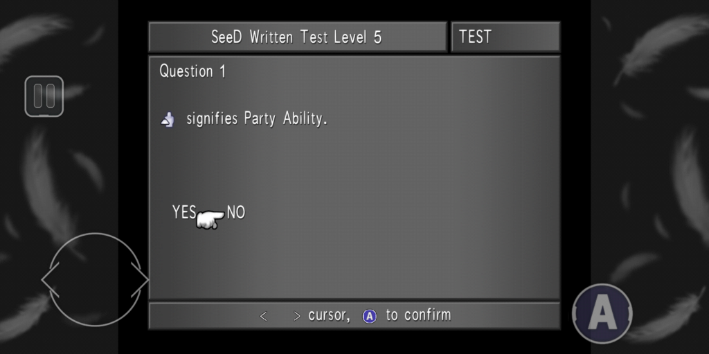 問題:▲図はパーティアビリティを表す。The answer is No. 答えは✕です。多分キャラアビリティだと思われる。Cだからね。覚えるしかない問題ですね。