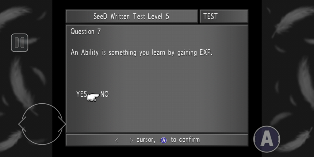問題:アビリティとはキャラクターが経験値をためることで覚えるものである。The answer is No. 答えは✕です。アビリティを覚えるには、アビリティポイント、つまりAPが必要です。EXPはレベルを上げるのに必要ですね。