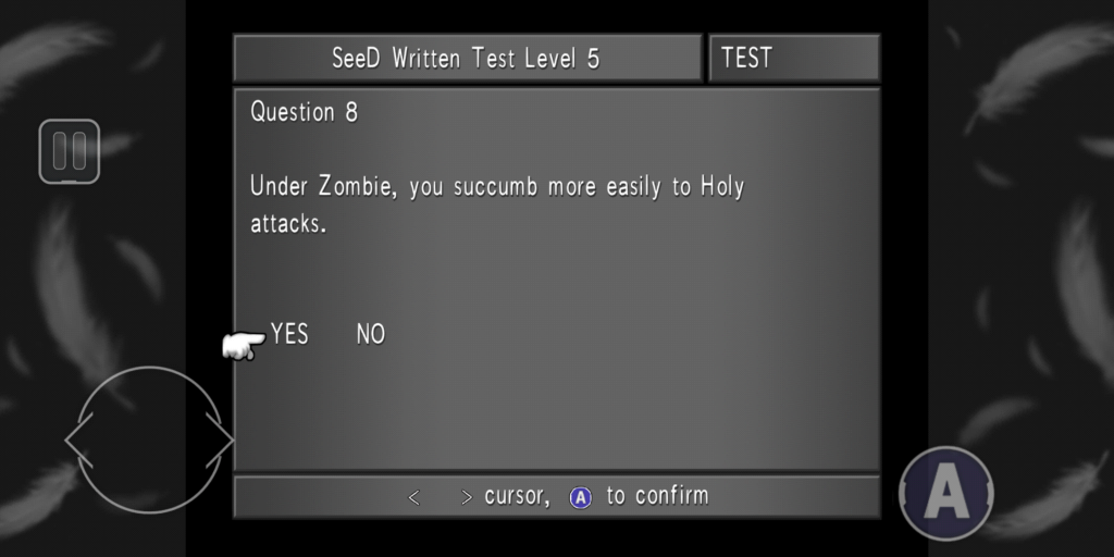 問題:ゾンビ状態のときは、聖の属性に対して弱くなる。The answer is Yes. 答えは◯です。アンデッドの人たちは、聖攻撃に弱いですね。アバドンをかいふく2発で倒すのは有名な話。(何故かそせいはきかないのよね確か)