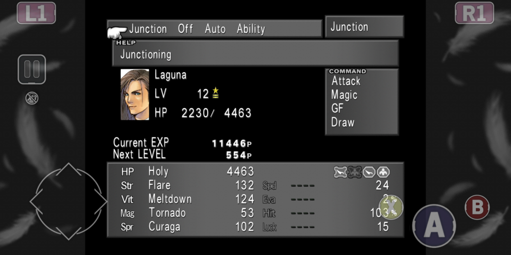 まず、みんなゼルのカードは持ってるかね?ゼルはバラムで取得したらすぐカード変化させて構わんよ。ハイパーリスト×3になりますね。そして、基本の3匹ケツァクウァトル、シヴァ、イフリートに力+60%のアビリティを覚えさせます。ラグナに力+60%のアビリティを付けて、攻撃にフレアをジャンクション、ラグナのレベルが12だと、これで攻撃が132になる。