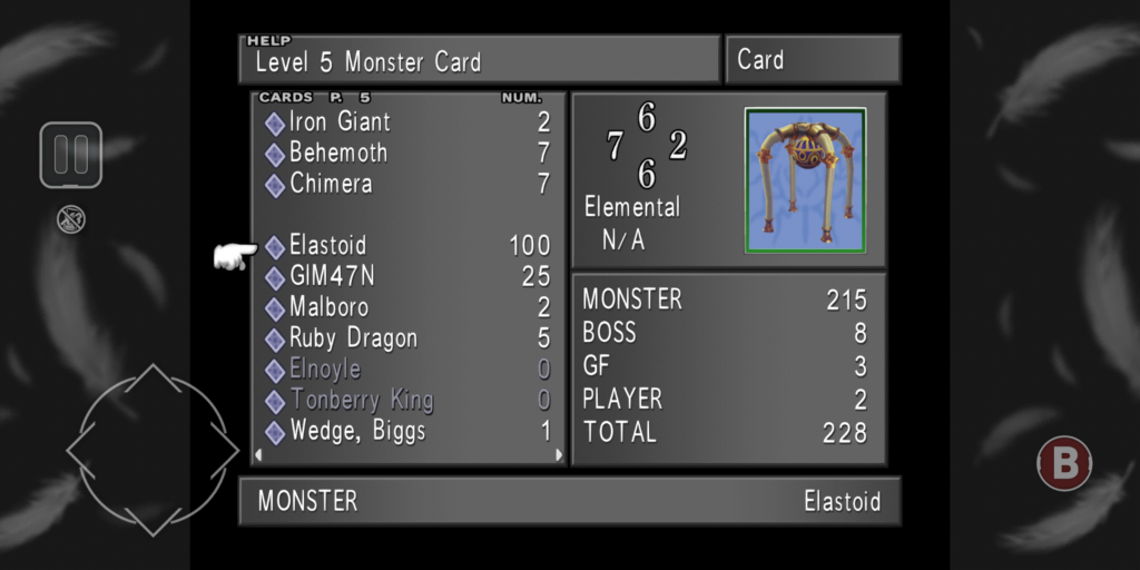 FF8では、モンスターをカードに変化させて、倒すことができます。そのカードをアイテムに変えるとストーリーをぐっと有利に進めることが可能です。だもんで、FF8プレイヤーは日夜カードに明け暮れております。今日も例に漏れず、カードカードの日々です。