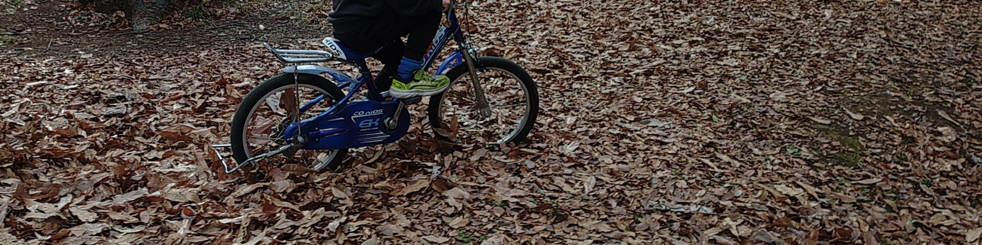 息子、同じ年頃の子ども自転車が後ろから追随してくると、スピードを上げて抜かれないようにします。負けん気が強くて困ります。